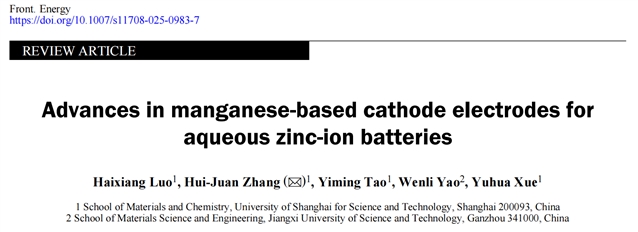 Haixiang Luo, Hui-Juan Zhang, Yiming Tao, Wenli Yao, Yuhua Xue. Advances in manganese-based cathode electrodes for aqueous zinc-ion batteries. Front. Energy,https://doi.org/10.1007/s11708-025-0983-7