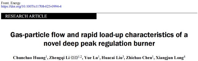 论文标题:Gas-particle flow and rapid load-up characteristics of a novel deep peak regulation burner