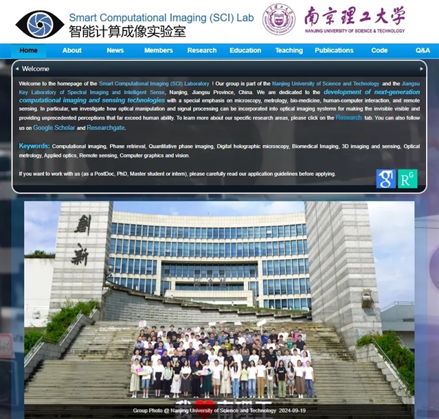 南京理工大学智能计算成像实验室(SCILab: www.scilaboratory.com)隶属于南京理工大学光学工程国家一级重点学科带头人陈钱教授领衔的“光谱成像与信息处理”教育部长江学者创新团队、首批“全国高校黄大年式教师团队”。实验室学术带头人左超教授为教育部长江学者特聘教授、国际光学工程学会会士(SPIE Fellow)、美国光学学会会士(Optica Fellow)、英国物理学会会士(IOP Fellow),入选科睿唯安全球高被引科学家。实验室致力于研发新一代计算成像与传感技术,在国家重大需求牵引及重点项目支持下开展新型光学成像的机理探索、工程实践以及先进仪器的研制工作,并开拓其在生物医药、智能制造、国防安全等领域的前沿应用。研究成果已在SCI源刊上发表论文260余篇,其中45篇论文被选作Light、Optica、AP、PhotoniX、OEA等期刊封面论文,23篇论文入选ESI高被引/热点论文,论文被引超过18000次。获欧洲物理学会菲涅耳奖(Fresnel Prize)、获中国光学工程学会技术发明奖一等奖、江苏省科学技术奖基础类一等奖、日内瓦国际发明展“特别嘉许金奖”等。培养博士生6人获全国光学工程优秀博士论文/提名奖、2人获国际光学工程学会(SPIE)光学与光子学教育奖学金、5人获中国光学学会王大珩光学奖、10人获Light全国光学博士生学术联赛全国百强。研究生获国家奖学金30余人次,国际会议最佳报告/海报奖40余人次。学生团队获全国“挑战杯”、“互联网+”、“创青春”、“研电赛”金奖/特等奖15次,2023年,获“互联网+”全国总冠军。师生双创事迹得到央视《焦点访谈》、人民网、新华网、光明日报、中国教育电视台等百余家媒体报道,社会辐射影响广泛。