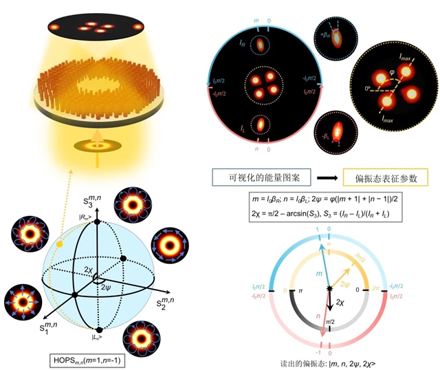 众所周知,在经典和量子光学领域,准确且迅速地表征复杂结构光的偏振态具有极其重要的潜在应用。传统偏振态检测方法通常依赖一系列级联的光学元件,其最终的检测系统体积庞大且检测过程复杂,这与当前光子器件小型化和集成化的发展趋势相悖。尽管超构表面偏振计的问世在一定程度上解决了上述问题,但大多数此类检测设备仍局限于识别位于标准庞加莱球上标量光束的偏振态。对于高阶庞加莱球上矢量光束的精确检测,目前仍面临巨大的挑战。