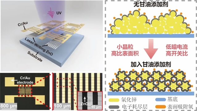 基于这一技术,研究团队成功制备了一种具有极低暗电流的光敏探测器。低暗电流的产生归功于氧化锌材料的极高比表面积,这一特点显著提高了器件的性能。