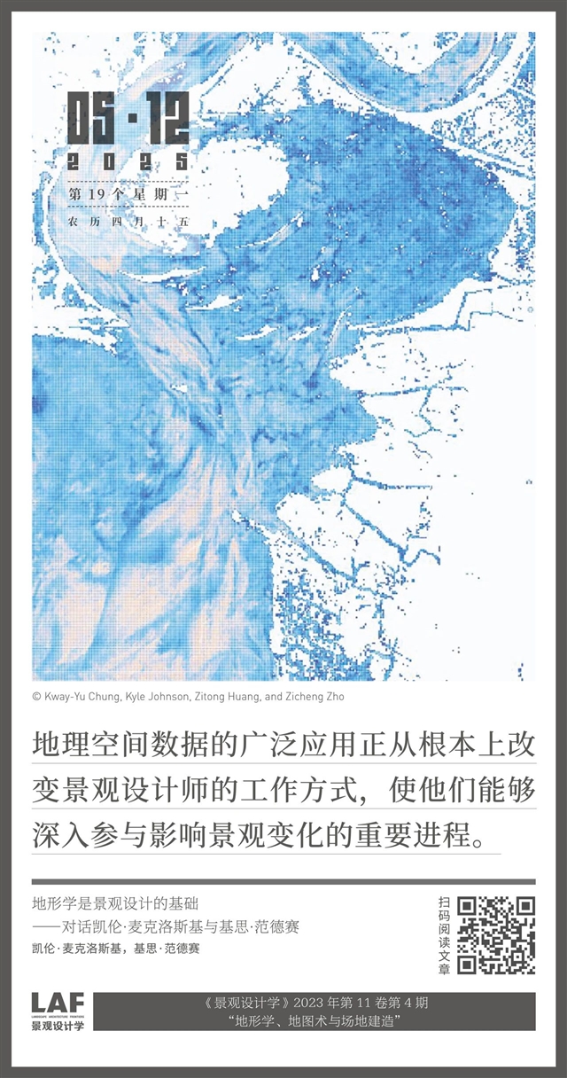 对地形的感知与理解不仅是景观设计师的工作基础,也是景观建造实践中的一个核心问题。在本次访谈中,两位资深学者——来自美国的凯伦·麦克洛斯基与基思·范德赛深入探讨了景观设计学中地形测绘的理论基础与发展历史、图析对景观设计师观察场地与开展设计的影响、新兴导航与传感技术在理解与设计景观中的作用,以及运用先进的数字媒体丰富景观设计呈现形式的方法。最后,他们还分享了如何指导学生进行现场勘察并将之转化为设计的教学经验。