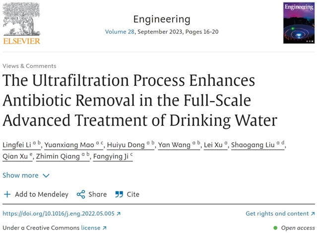 | 超滤工艺助力饮用水处理:高效去除抗生素,降低健康风险 | Engineering |