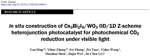 | FIE 西安交大陈杰教授:原位构建用于可见光下光化学CO2还原的Cs3Bi2I9WO3 0D1D Z型异质结光催化剂 |