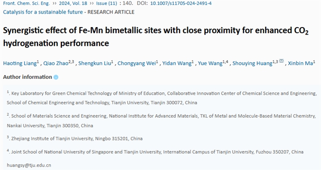 论文标题:Synergistic effect of Fe-Mn bimetallic sites with close proximity for enhanced CO2 hydrogenation performance
