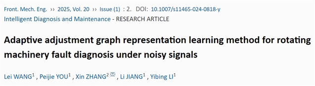 Lei WANG(王磊), Peijie YOU(尤培杰), Xin ZHANG(张鑫), Li JIANG(江丽), Yibing LI(李益兵). Adaptive adjustment graph representation learning method for rotating machinery fault diagnosis under noisy signals. Front. Mech. Eng., 2025, 20(1): 2