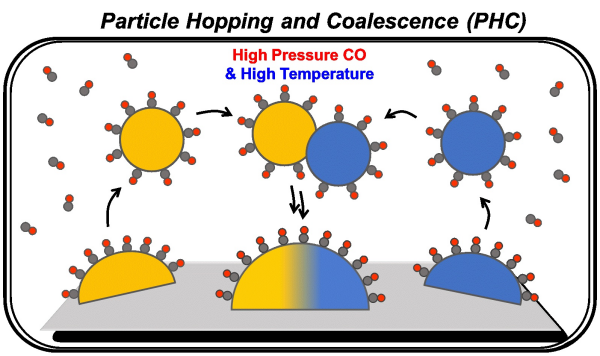 相关研究成果以Particle Hopping and Coalescence of Supported Au Nanoparticles in Harsh Reactive Environments为题,发表在《美国化学会志》(JACS)上。