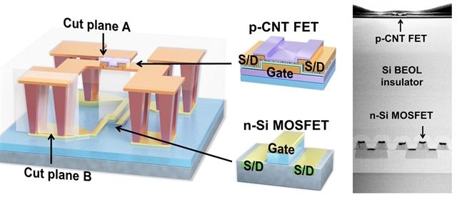 图1 碳硅三维异质集成CMOS FET器件示意图