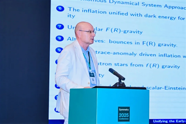 Sergei D. Odintsov教授的报告题目为The unified universe history from modified gravity。对称性概念普遍适用于各个学科。本次关于理论宇宙学的讲座简要概述了宇宙历史,从膨胀到辐射/物质主导,最终通过修正引力进入暗能量时代。报告回顾了众多试图描述宇宙演化的替代引力理论,这些理论具有广义协变性,而且通常被认定为无鬼态引力理论。本次报告特别关注了F(R)引力和爱因斯坦-高斯-博内引力。这种普适的方法为宇宙演化开辟了新的视角,而不仅仅是目前宇宙学中标准的特定时代描述。