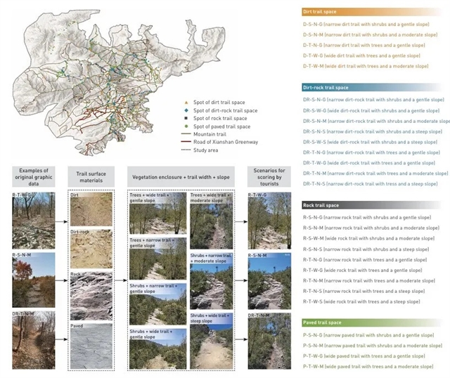 城郊山地空间作为近郊自然环境,可满足徒步者的短途徒步需求,但复合使用人群对步道空间规划与管理提出了更高的要求。而目前研究对实际规划设计的指导价值不足。因此本研究从山地步道空间使用群体出发,通过使用者主观感知调查,对比不同使用者对步道空间的偏好差异,从而为山地步道规划建设提供参考。