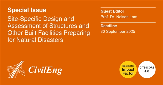 基于此,CivilEng邀请了墨尔本大学Nelson Lam教授,合作建设特刊“Site-Specific Design and Assessment of Structures and Other Built Facilities Preparing for Natural Disasters (针对自然灾害的建筑设施的场地设计与评估)”。本特刊旨在征集有关建筑设施在自然灾害准备方面的场地设计与评估的最新研究成果,重点关注建筑设施的场地设计与评估方法,这些方法考虑了区域和场地特定因素,以提高建筑设施在自然灾害中的韧性。特刊涵盖但不限于以下主题: