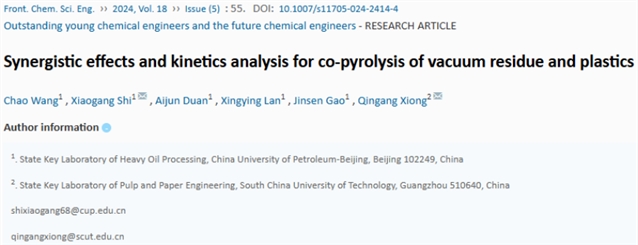 论文标题:Synergistic effects and kinetics analysis for co-pyrolysis of vacuum residue and plastics