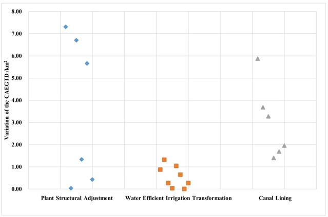 图4. 节水情景方案中单一措施变化引起的CAEGTD。