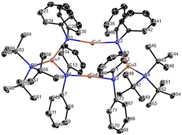 Cyclo-Tetrakis(μ-diphenylphosphido)-1,5-bis(tri-tert-butylphosphine)-Tetracopper