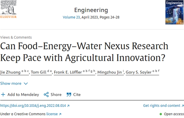 Jie Zhuang, Tom Gill, Frank E. Löffler, Mingzhou Jin, Gary S. Sayler. Can Food–Energy–Water Nexus Research Keep Pace with Agricultural Innovation?. Engineering, 2023, 23(4): 24–28