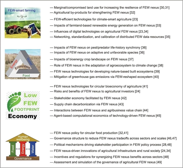 该研究强调,食物–能源–水纽带关系研究必须与农业创新保持同步。只有这样,才能确保农业 FEW 系统的社会经济可持续性,实现资源的合理利用和农业的长远发展。