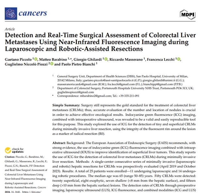 本研究探讨了在微创肝切除术中使用ICG检测微小和浅表结直肠肝转移 (CRLM) ,使用病变周围荧光边缘的完整性作为根治性切除 (R0) 的标志。