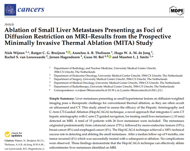 在这项概念验证研究中,HepACAGA技术成功用于检测和消融DWI上发现的100%的小肝转移瘤,复发率低且无并发症。该技术能够消融MRI上检测到的亚厘米肝转移瘤。