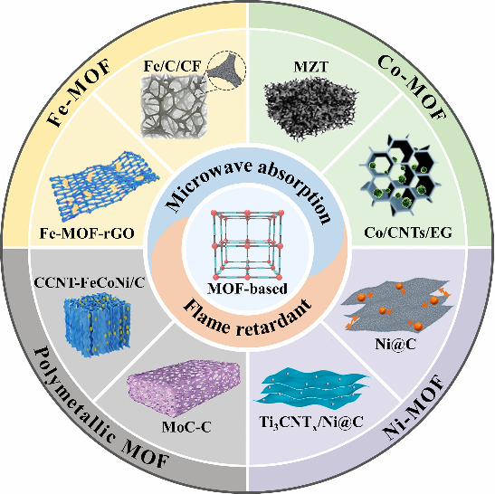 论文标题:Metal–Organic Framework-Based Composites for Dual Functionalities: Advances in Microwave Absorption and Flame Retardancy