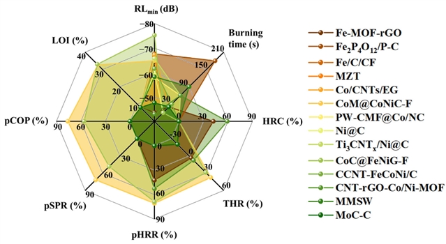 所有基于MOF的双功能复合材料的EMA-阻燃水平雷达图