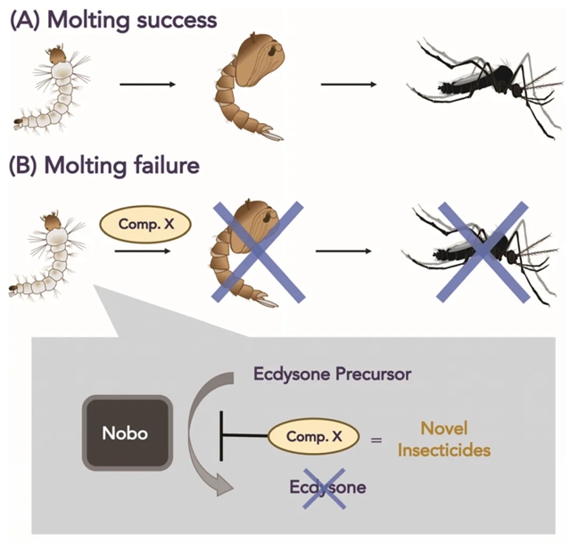 2. Nobo仅在双翅目和鳞翅目昆虫中保守,抑制其活性可作为窄谱昆虫生长调节剂,专门针对蚊子等害虫。
