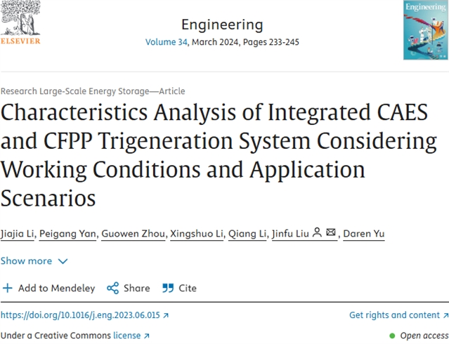 Jiajia Li, Peigang Yan, Guowen Zhou, Xingshuo Li, Qiang Li, Jinfu Liu, Daren Yu. Characteristics Analysis of Integrated CAES and CFPP Trigeneration System Considering Working Conditions and Application Scenarios. Engineering, 2024, 34(3): 233–245