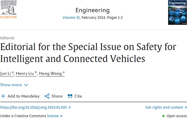 Jun Li, Henry Liu, Hong Wang. Editorial for the Special Issue on Safety for Intelligent and Connected Vehicles. Engineering, 2024, 33(2): 1–2https://doi.org/10.1016/j.eng.2024.01.005