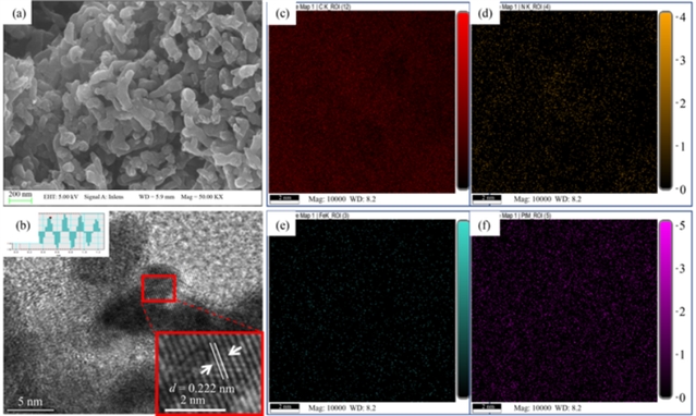 图2 Pt/Fe-N-C催化剂的SEM与TEM图像