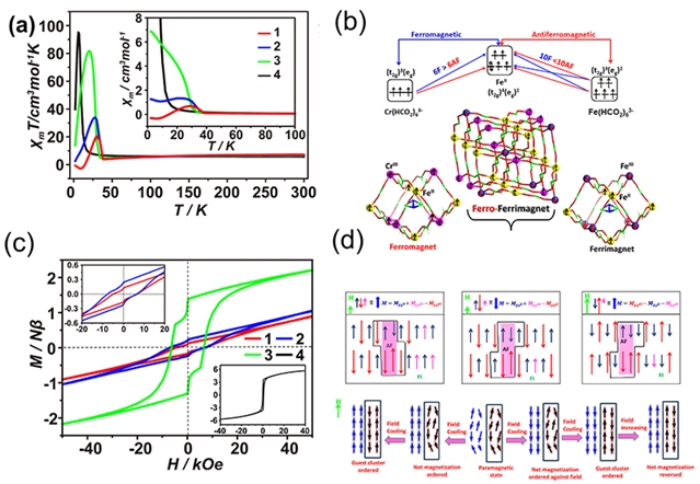 第三篇精选文章为“Positive and Negative Exchange Bias in N-, P- and Q-Type Ferri-Magnets of Niccolite Metal Formates [CH3NH2CH3]n[CrIII1−xFeIIIxFeII(HCO2)6]n”,由天津理工大学赵炯鹏教授和南开大学卜显和院士及其合作者报道。
