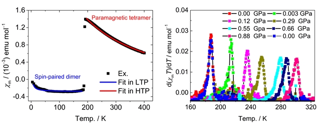 第四篇精选文章为“Comprehensively Understanding the Transformation of Paramagnetic Tetramer to Spin-Paired Dimer in an S = ½ Molecular Crystal”,由南京工业大学任小明教授及其合作者报道。