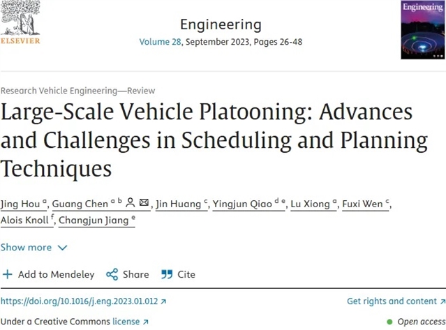 Jing Hou, Guang Chen, Jin Huang, Yingjun Qiao, Lu Xiong, Fuxi Wen, Alois Knoll, Changjun Jiang. Large-Scale Vehicle Platooning: Advances and Challenges in Scheduling and Planning Techniques. Engineering, 2023, 28(9): 26–48