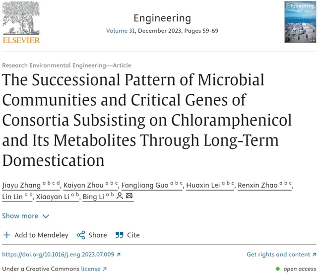 清华大学科研团队驯化高效菌群助力氯霉素污染治理 Engineering |