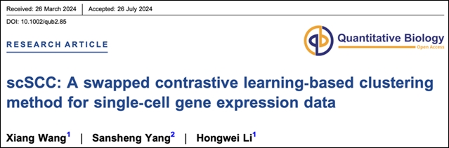 近期,中国地质大学(武汉)数学与物理学院李宏伟教授课题组在Quantitative Biology期刊发表了一篇题目名为"scSCC: A swapped contrastive learning-based clustering method for single-cell gene expression data"的文章,提出了一个基于交换对比学习的细胞聚类方法scSCC,通过利用交换预测策略来增强细胞低维嵌入表示的聚类结构,帮助提高聚类任务的精度,并在多个数据集上取得了优越性能。