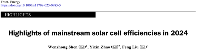 论文标题:Highlights of mainstream solar cell efficiencies in 2024
