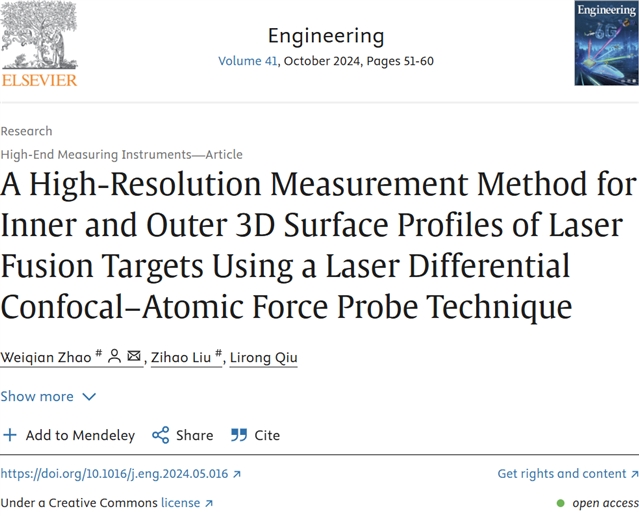 论文标题:A High-Resolution Measurement Method for Inner and Outer 3D Surface Profiles of Laser Fusion Targets Using a Laser Differential Confocal–Atomic Force Probe Technique
