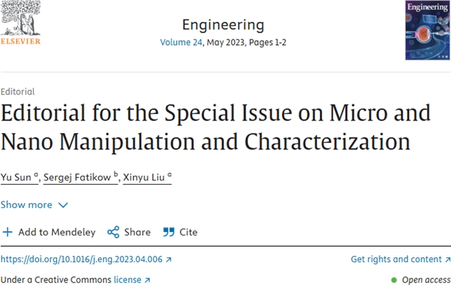 | 孙钰院士等:微纳操作与表征 Engineering |