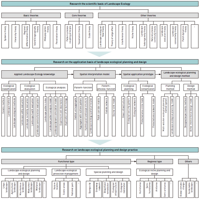 本文提出连接科学研究与规划设计实践的三层级研究体系:1)景观生态科学基础研究;2)景观生态规划设计应用基础研究;3)景观生态规划设计实践应用研究。