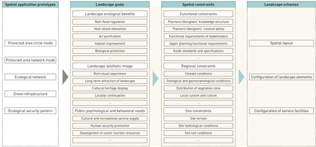 3)景观格局优化:映射到影响特定景观过程的景观格局结构,提出规划设计方案。