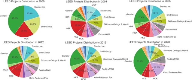 建筑可持续实践评估:2000-2023 年头部事务所 LEED 认证采纳与影响的数据驱动分析