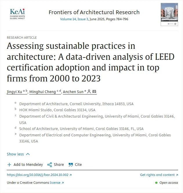 论文标题:Assessing sustainable practices in architecture: A data-driven analysis of LEED certification adoption and impact in top firms from 2000 to 2023