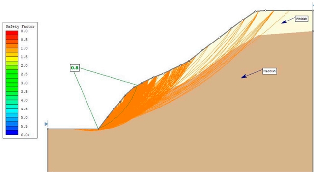 力学测试揭示了两种材料在饱和状态下的强度特性。直接剪切试验表明,白色土壤峰值强度参数(c=4.7kPa,φ=31°)略高于红色土壤(c=2.3kPa,φ=29°),但残余强度参数相同(φr=28°)。膨胀试验显示两种土壤膨胀压力均较低(AR1=3.8kPa,AR2=2.5kPa),表明膨胀行为不是滑坡主因。基于这些参数的简化边坡稳定性分析(Morgenstern-Price法)显示最小安全系数为0.8,破坏面首先在坡脚红色土层中发展。研究表明,尽管两种土壤宏观力学参数相近,但微观尺度上的显著差异(包括矿物组成、孔隙结构和风化程度)是理解滑坡触发机制的关键。