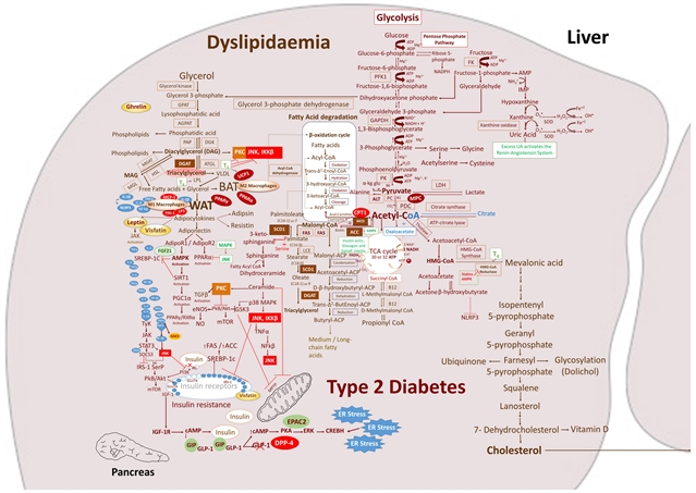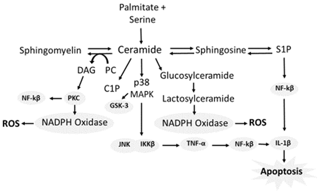 LDL-C升高和HDL-C降低是主要特征。胆固醇酯转运蛋白(CETP)介导的脂质交换促进动脉粥样硬化。神经酰胺的积累通过激活PKC和NF-κB通路,加重胰岛素抵抗和血管损伤。