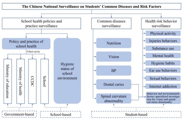 在人口结构转型与疾病谱系变迁的双重挑战下,中国政府高度重视儿童青少年的健康。自2016年开始,国家疾控局组织开展每年一次的中国学生常见病和健康影响因素监测,到2022年其已形成覆盖全国32个省级单位和98%区县,600多万大中小学生参与的中国学生常见病和健康影响因素监测系统(CNSSCDRF)。该监测系统构建了个体健康-行为-环境-政策支持的监测内容体系,监测方式多样,形成监测-预警-干预有效循环的全球规模最大的学生健康监测网络。本文将深度解析该系统的监测内容、方法以及政策转化价值。