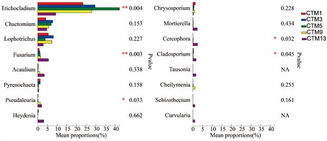 番茄连作不同周期时土壤真菌群落的差异分析。