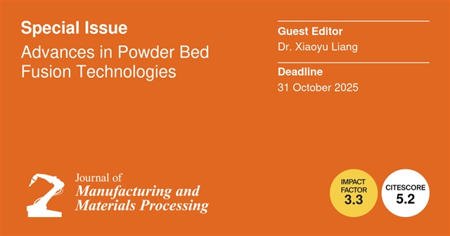 JMMP邀请了清华大学的梁啸宇博士创建特刊“Advances in Powder Bed Fusion Technologies (粉末床熔合技术的进展)”。在这期特刊中,我们欢迎研究文章、评论和简短通讯,展示粉末床熔合技术的最新进展。本期特刊的主题包括但不限于以下内容:
