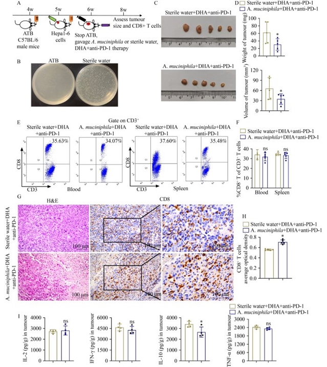 图3 抗PD-1与DHA联合治疗中,嗜黏蛋白阿克曼氏菌改善了肿瘤免疫抑制微环境