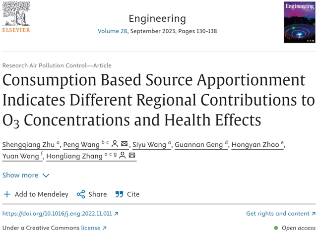 复旦大学王芃、张宏亮等科研团队在中国工程院院刊《Engineering》发表题为 “Consumption Based Source Apportionment Indicates Different Regional Contributions to O3Concentrations and Health Effects” 的研究性文章。该研究通过溯源式化学传输模型,深入探究 2013 年夏季中国跨省和国际贸易活动对臭氧(O3)污染的影响,发现传统基于生产的核算方法存在局限,为O3污染控制提供新思路。