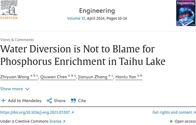 论文标题:Water Diversion is Not to Blame for Phosphorus Enrichment in Taihu Lake