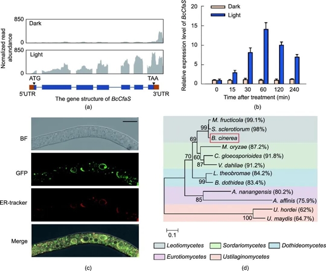 图1.B. cinerea光响应基因BcCfaS的鉴定。