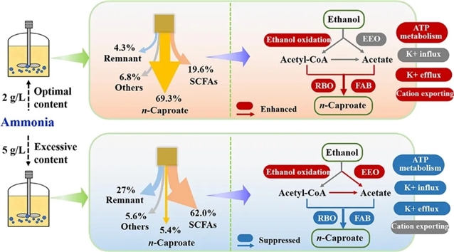 该研究成果不仅深化了对厌氧生物过程中氨作用机制的认识,也为中链脂肪酸的工业化生产提供了重要技术参考,助力实现废弃生物质的高值化利用。